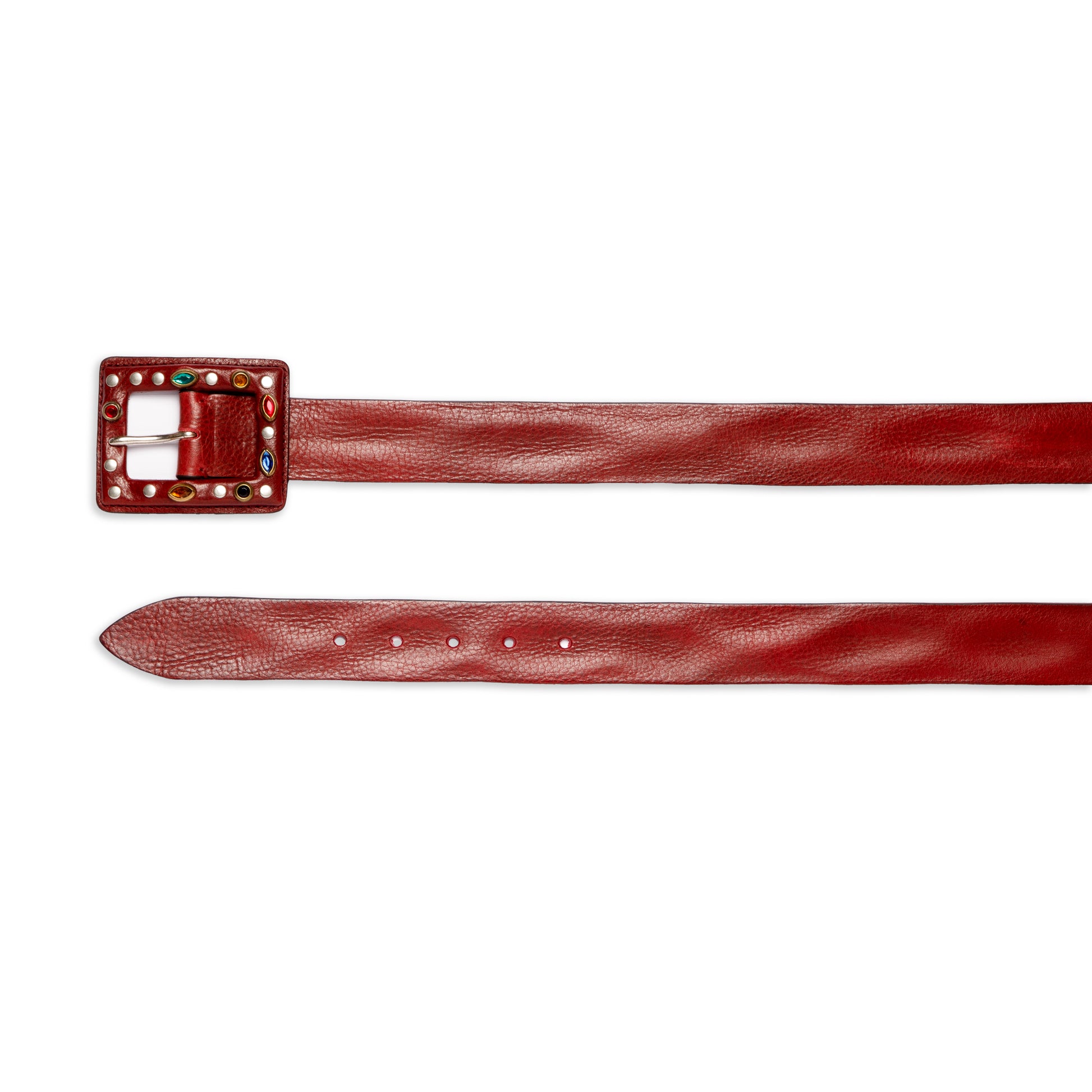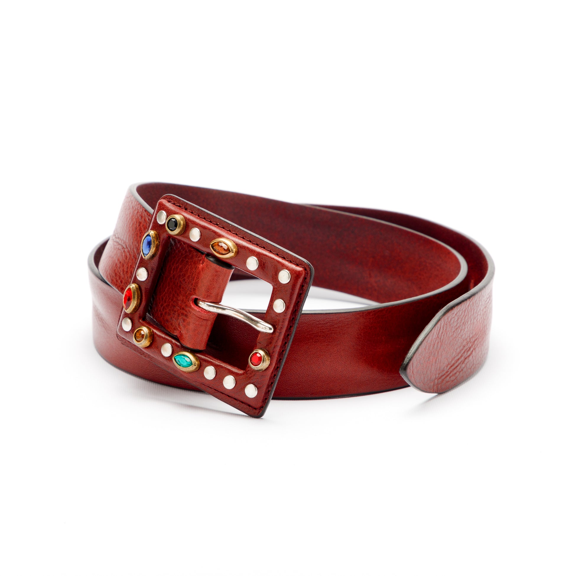 LEATHER BELT WITH WRAPPED AND STUDDED BUCKLE