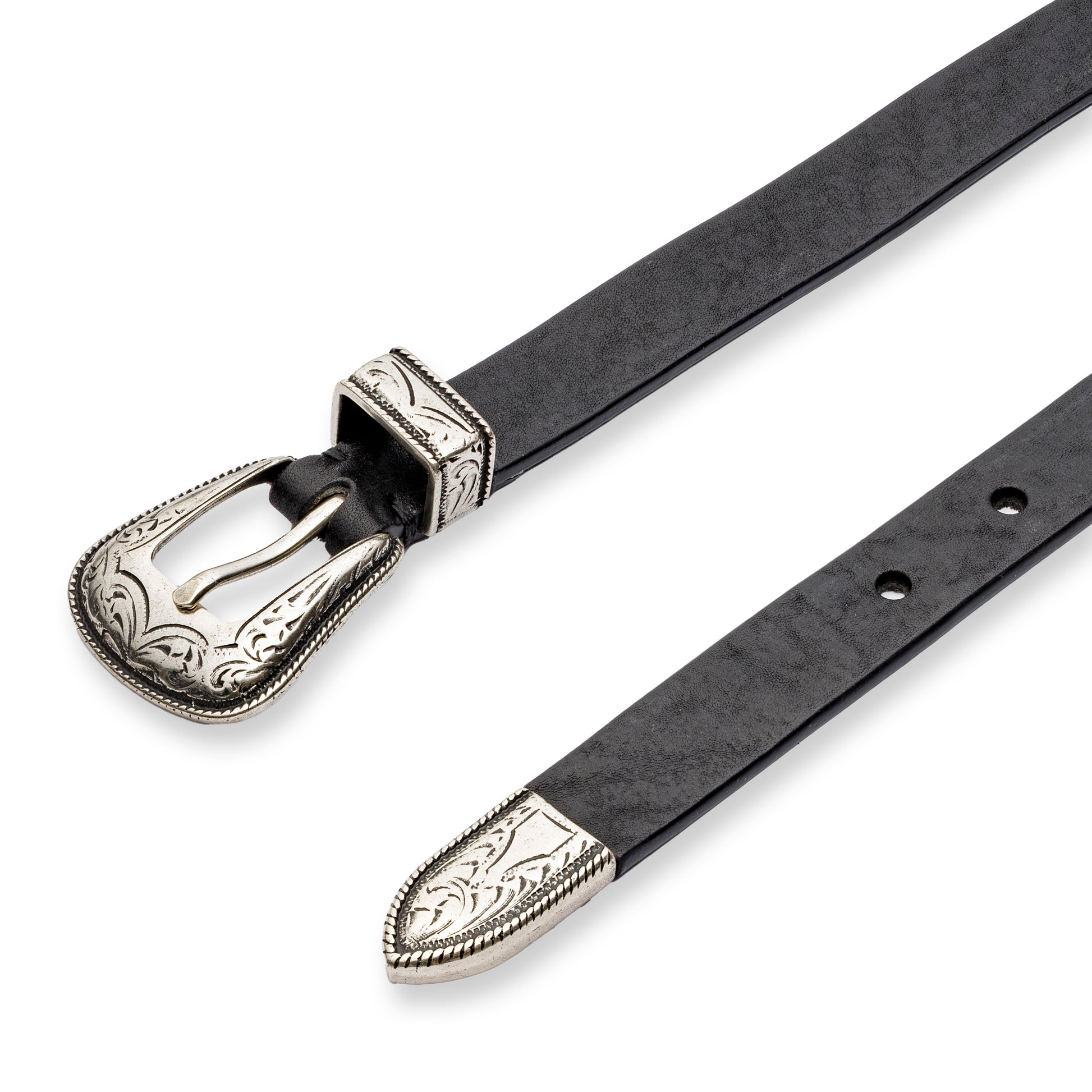 This stylish leather belt features a classic design with a durable buckle, a versatile strap, and a distinctive Western-style tip, making it a perfect accessory to complement any casual or western-inspired outfit. Crafted from high-quality leather, it offers both durability and timeless appeal.