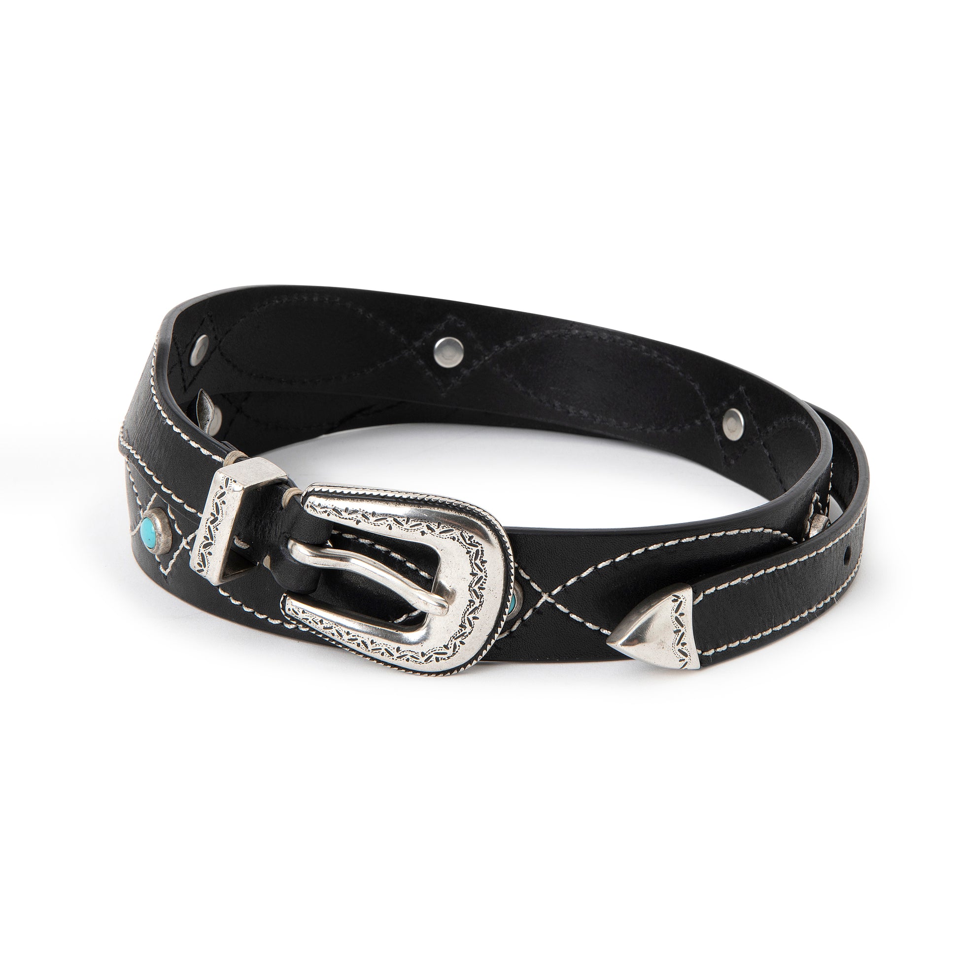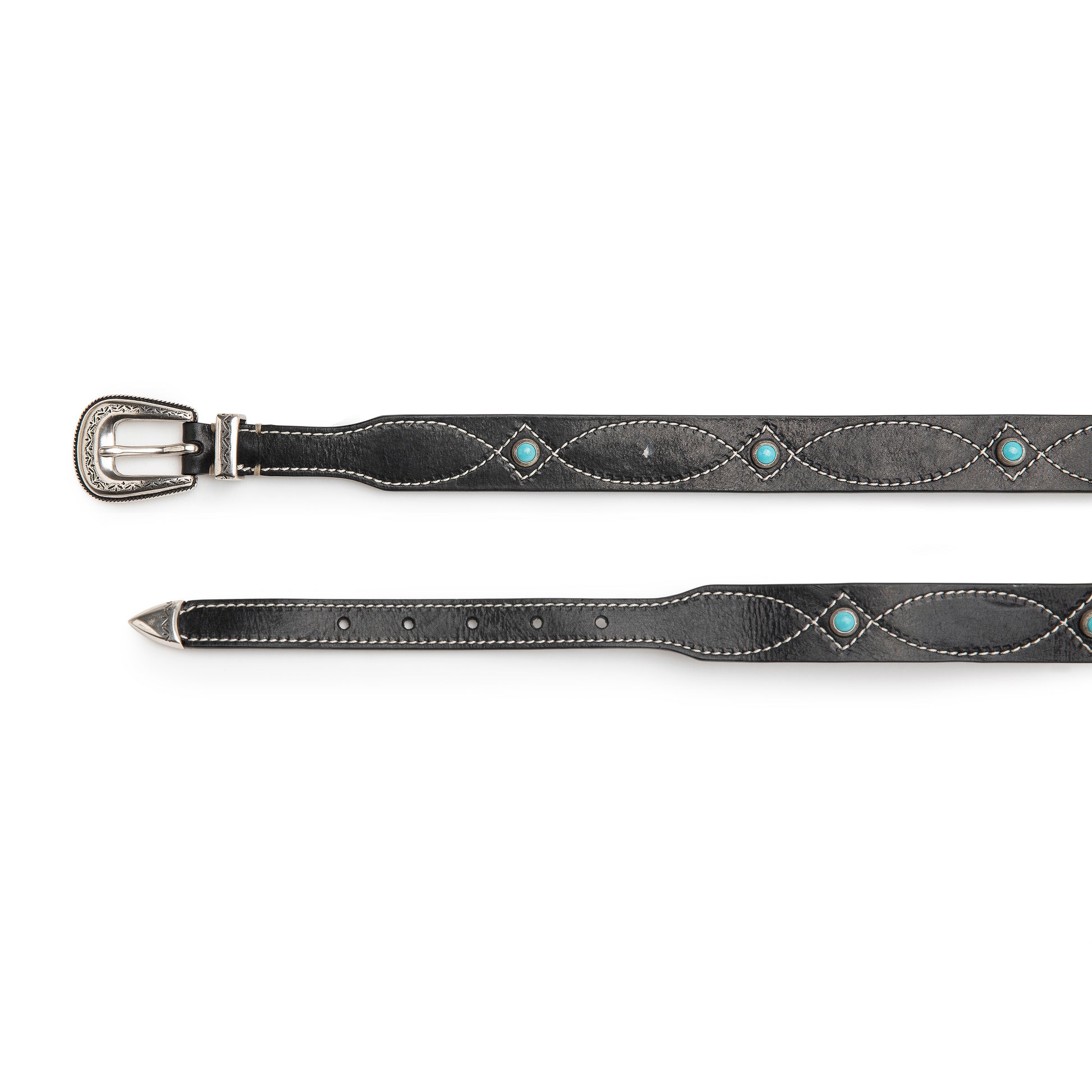 VINTAGE LEATHER BELTS WITH STUDS AND SILVER BUCKLE.