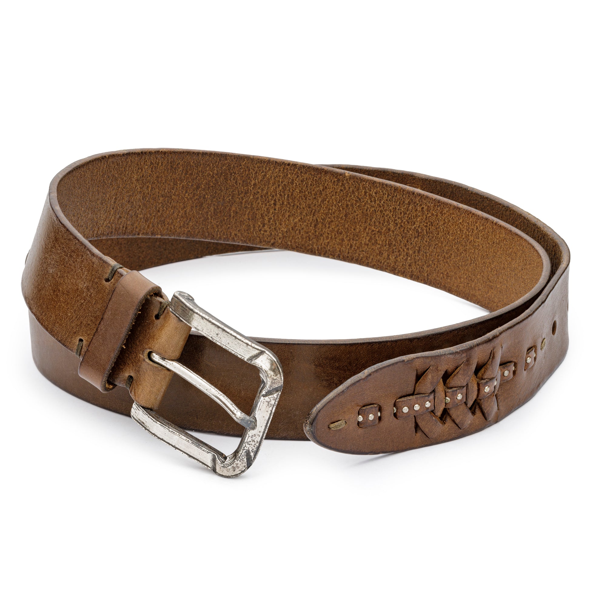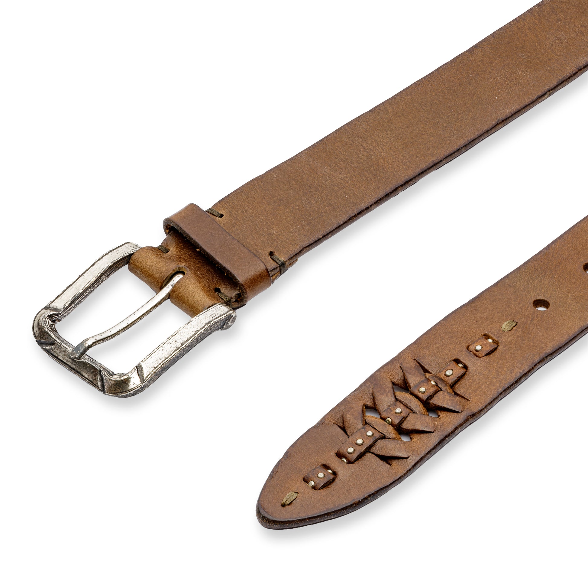 LEATHER BELT WITH PATTERNS ON THE TIP