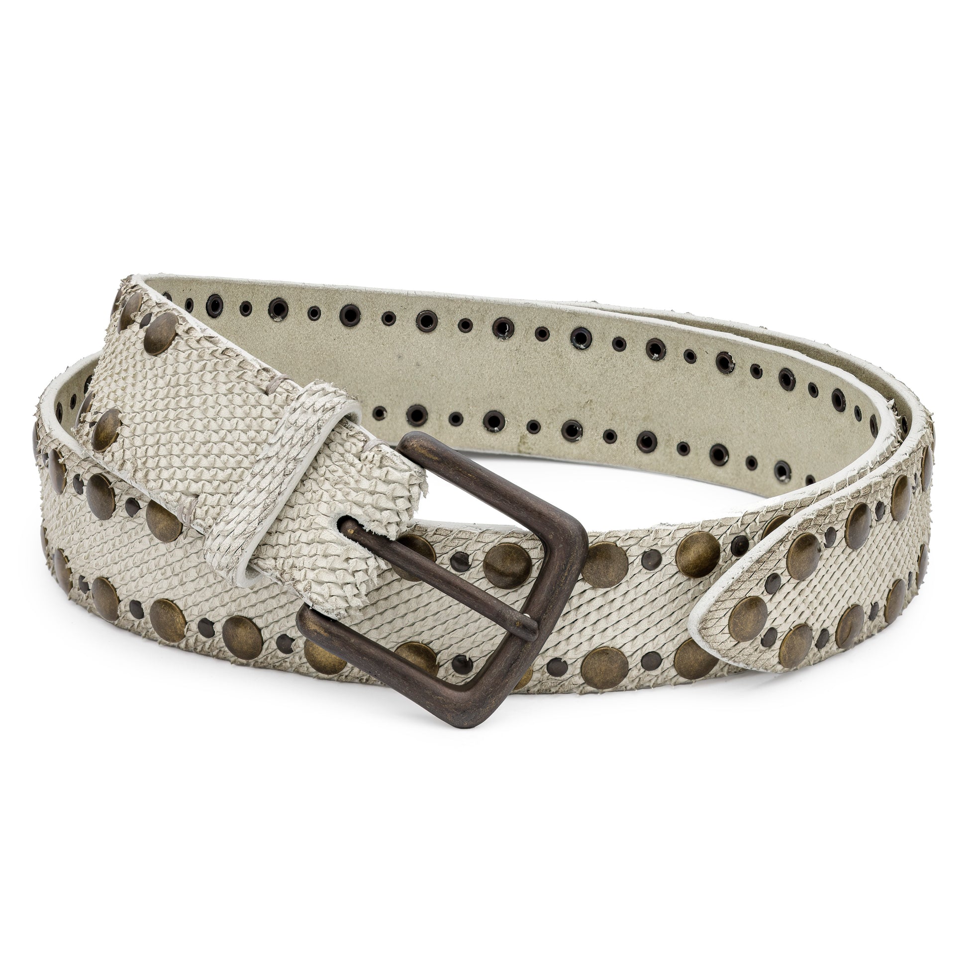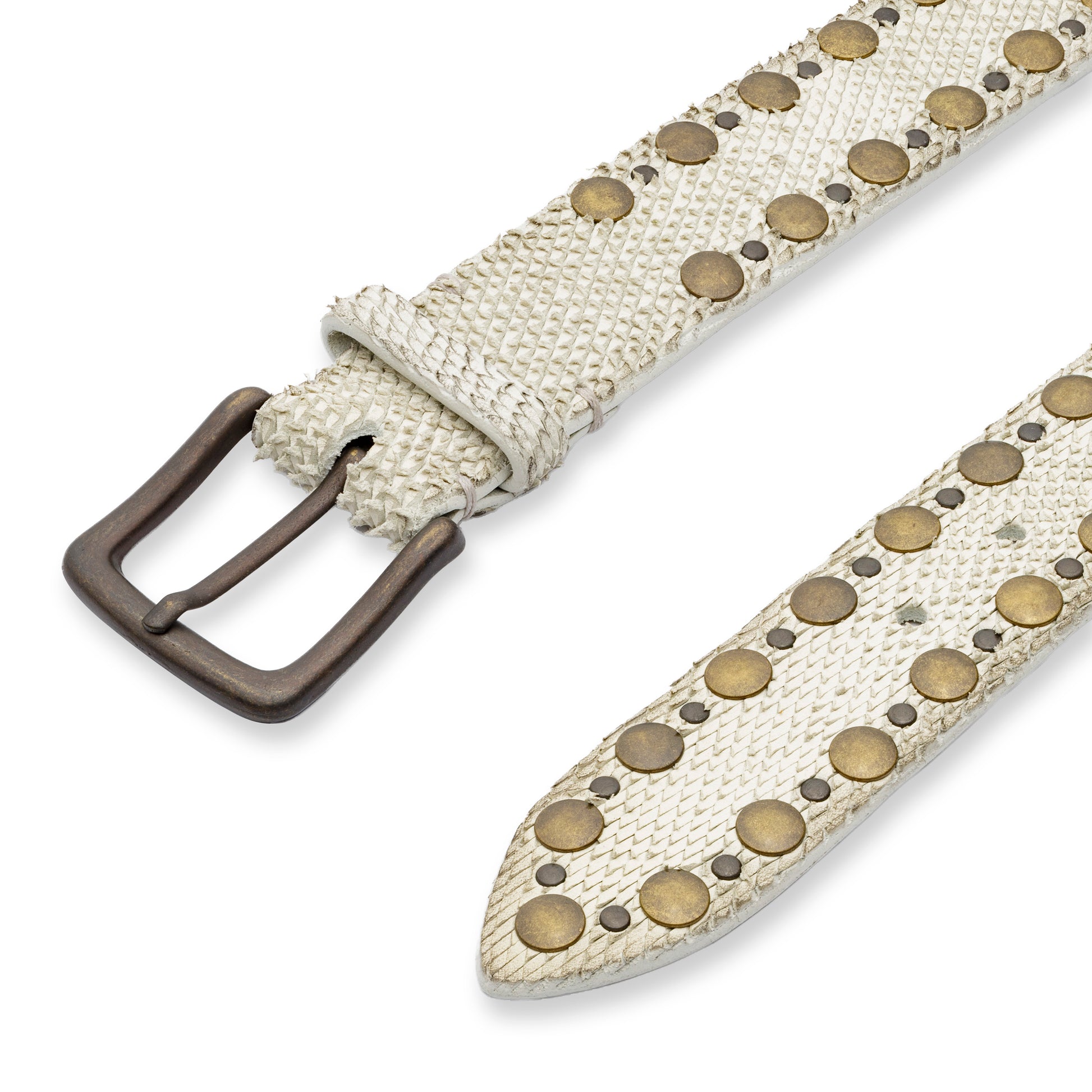 CARVED LEATHER BELT WITH STUDS AND RIVETS