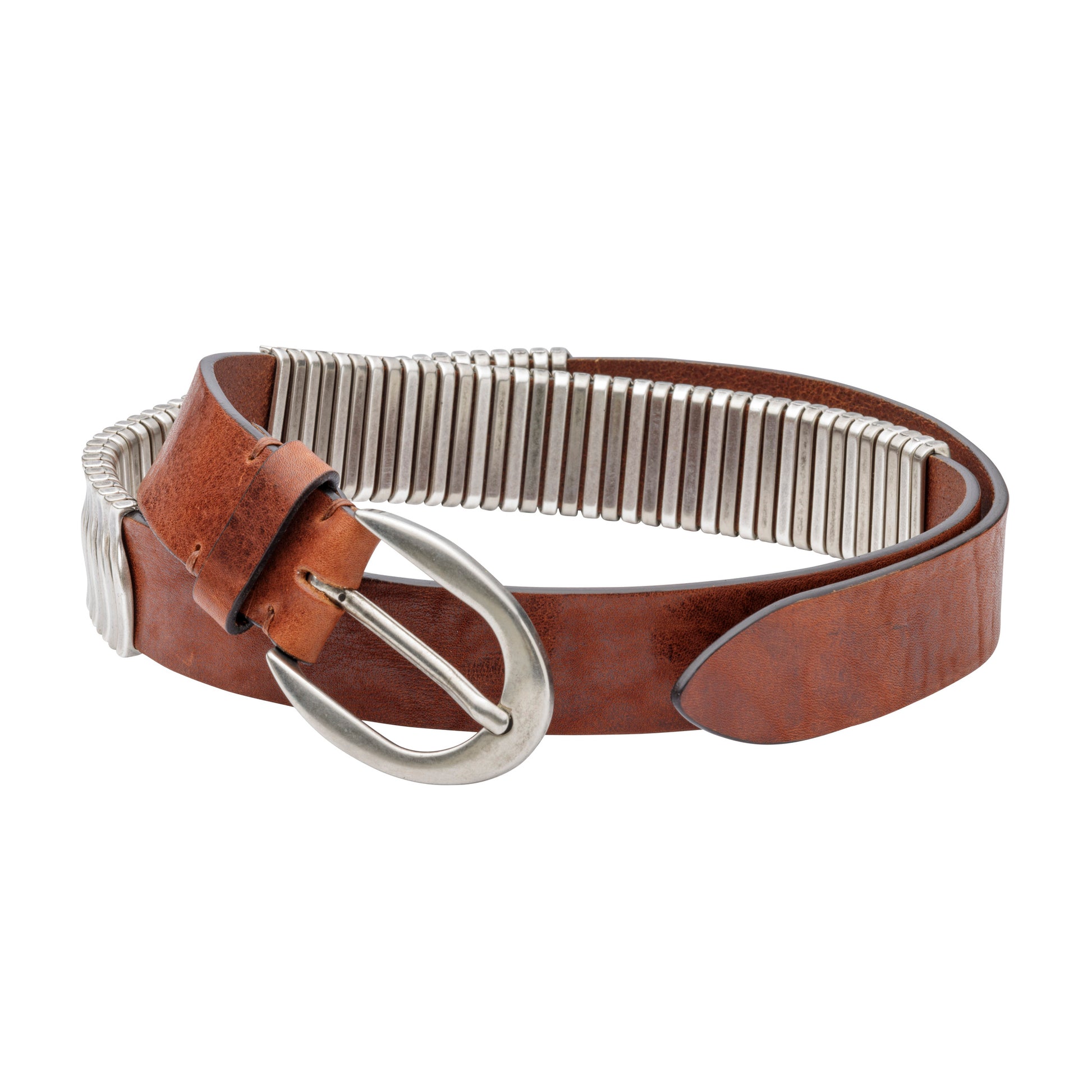 VINTAGE LEATHER BELTS WITH SLIDINGS AND ENGLISH SILVER BUCKLE.
