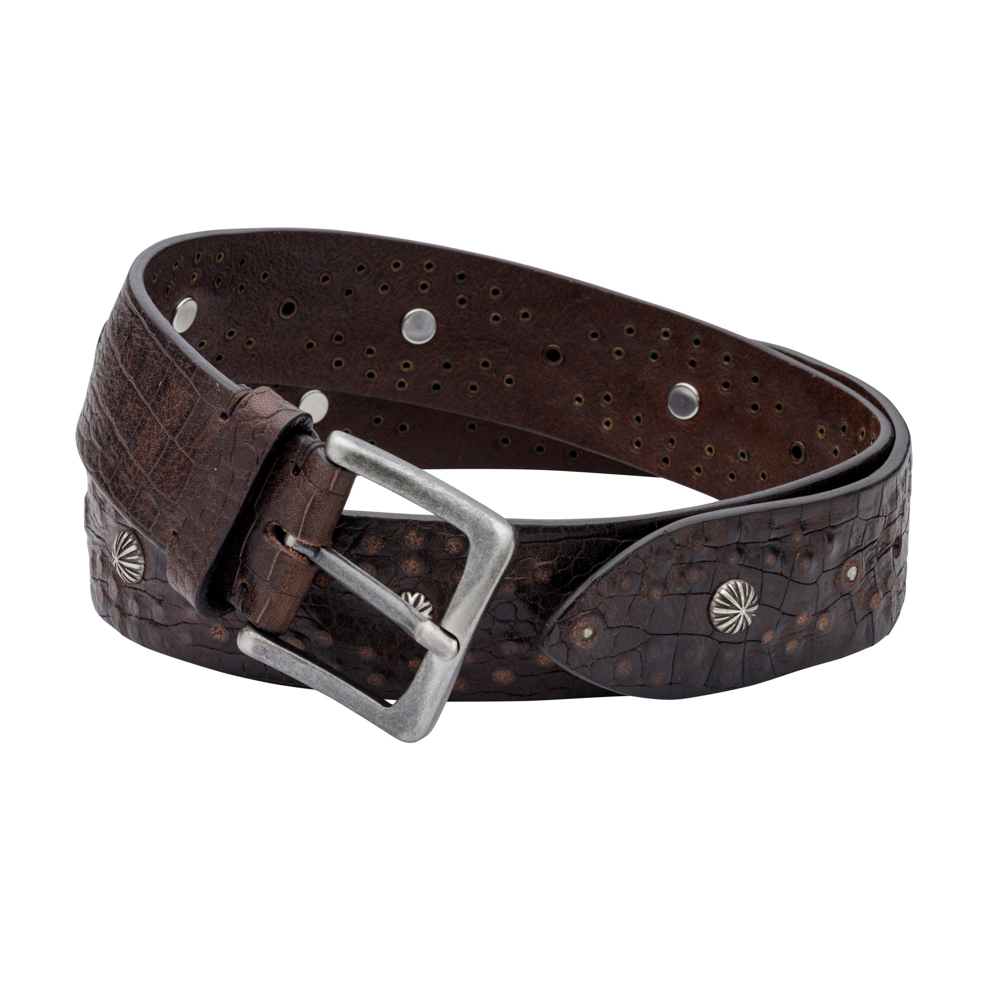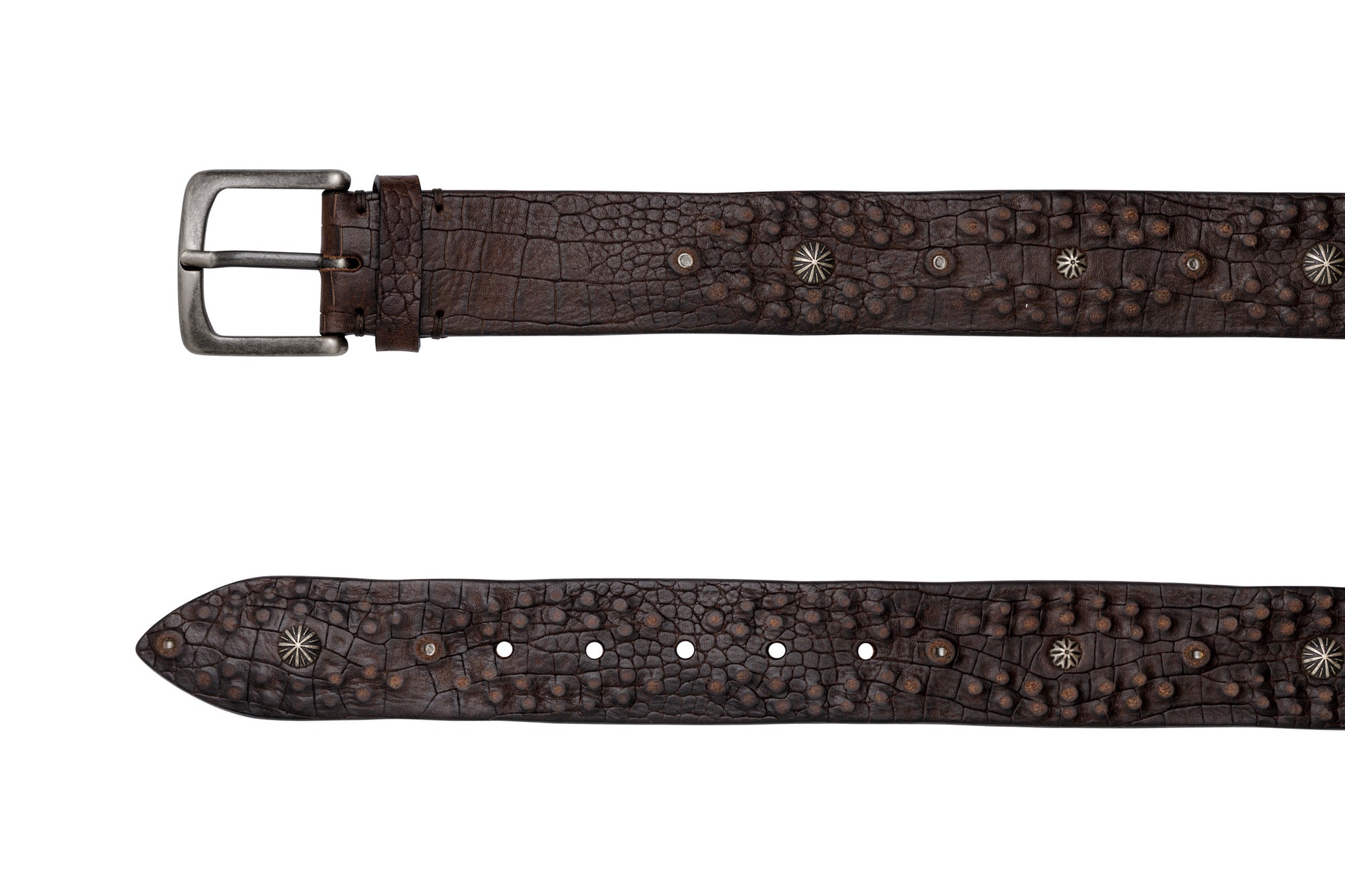 HIMALAYA LEATHER BELTS WITH STUDS AND ENGLISH SILVER BUCKLE.