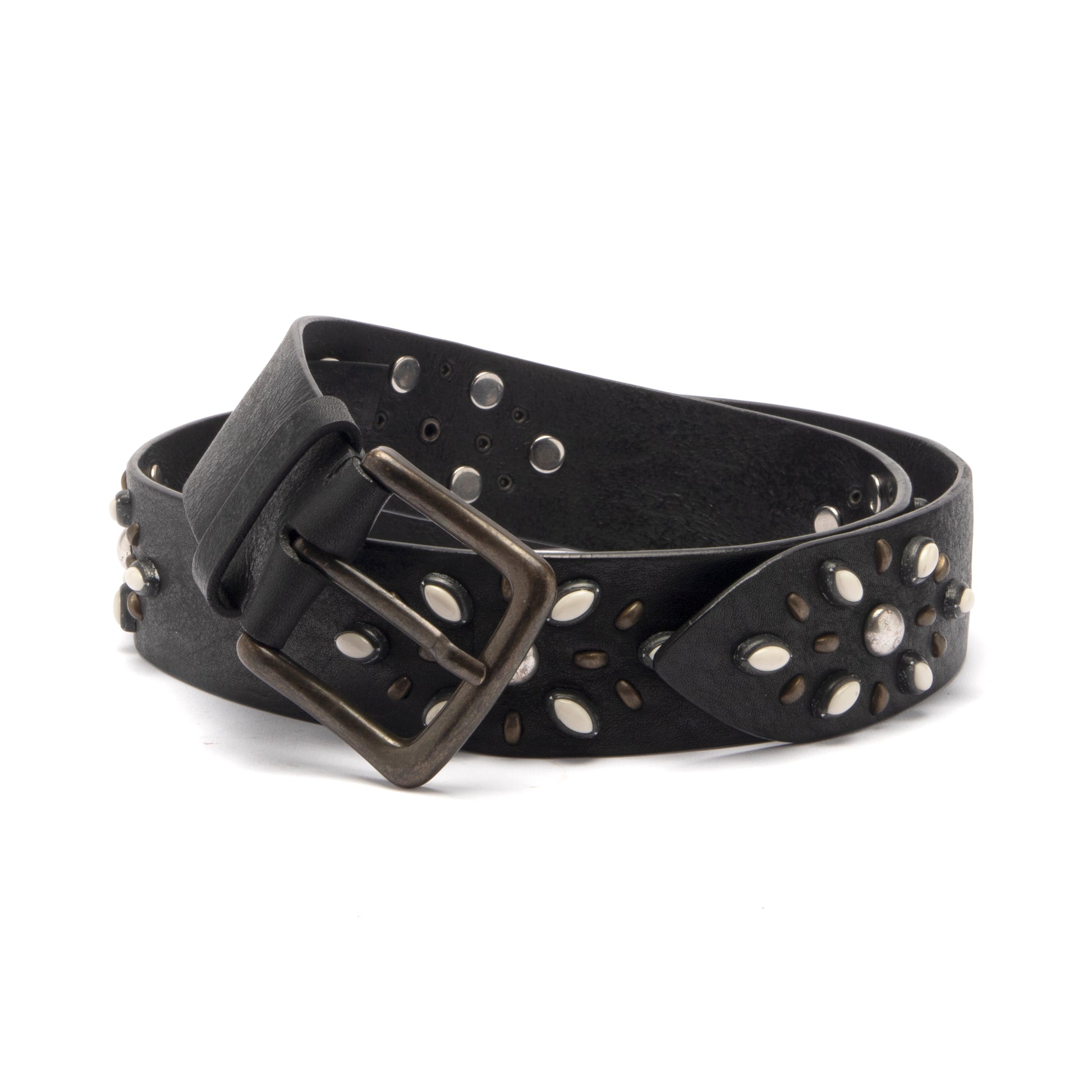 VINTAGE LEATHER BELT WITH STUDS AND BRASS BUCKLE.