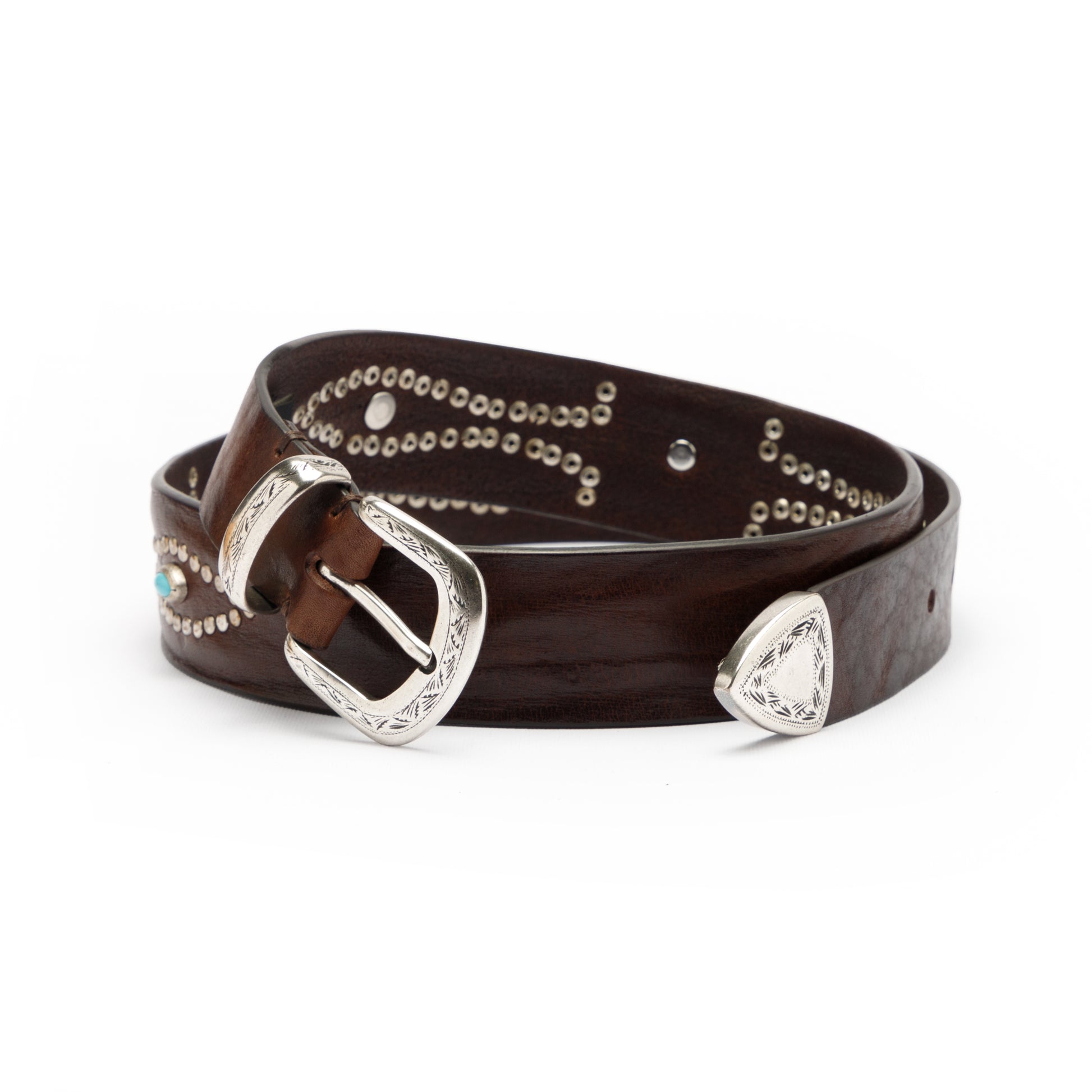 DOUBLE WIDTH LEATHER BELT WITH STUDS