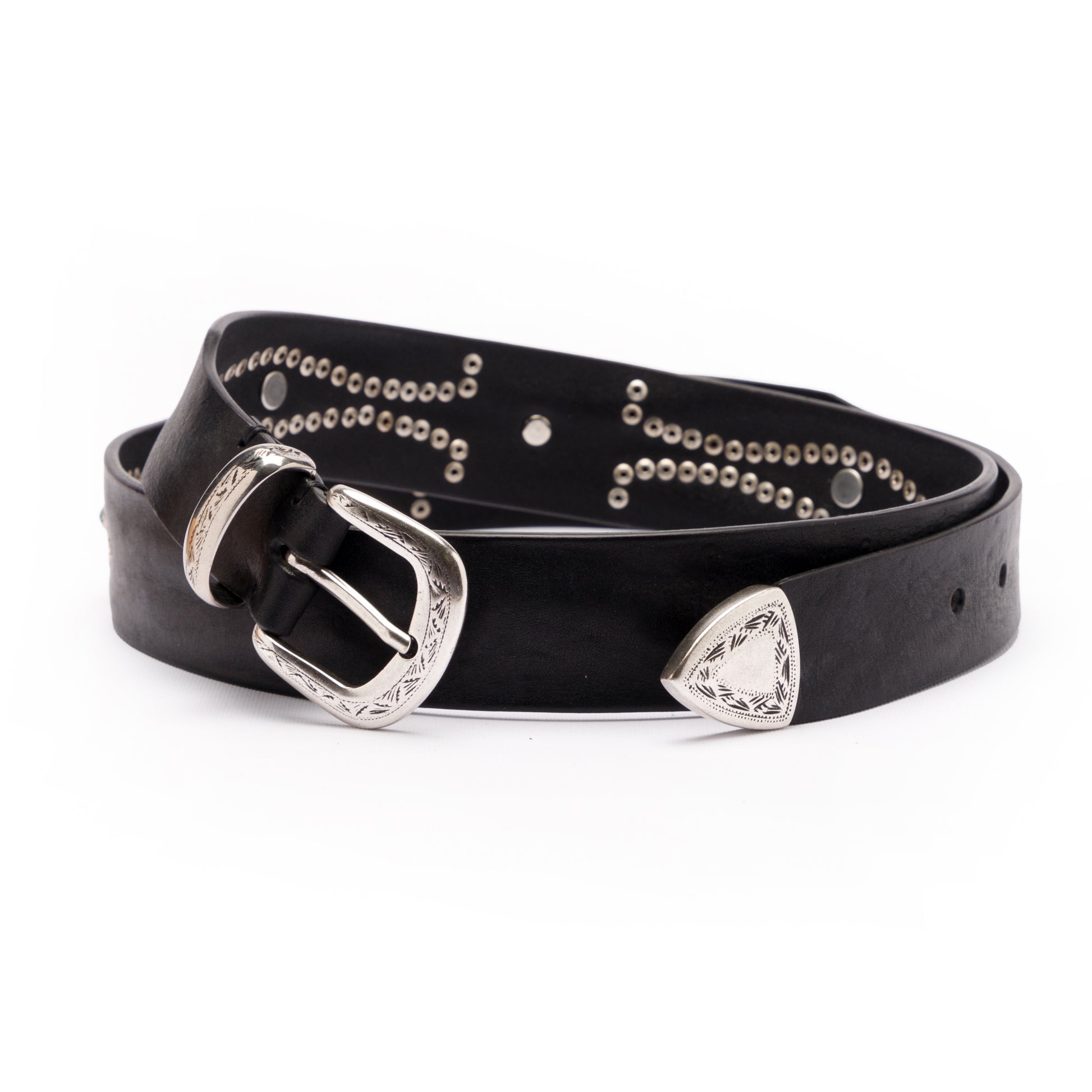 DOUBLE WIDTH LEATHER BELT WITH STUDS