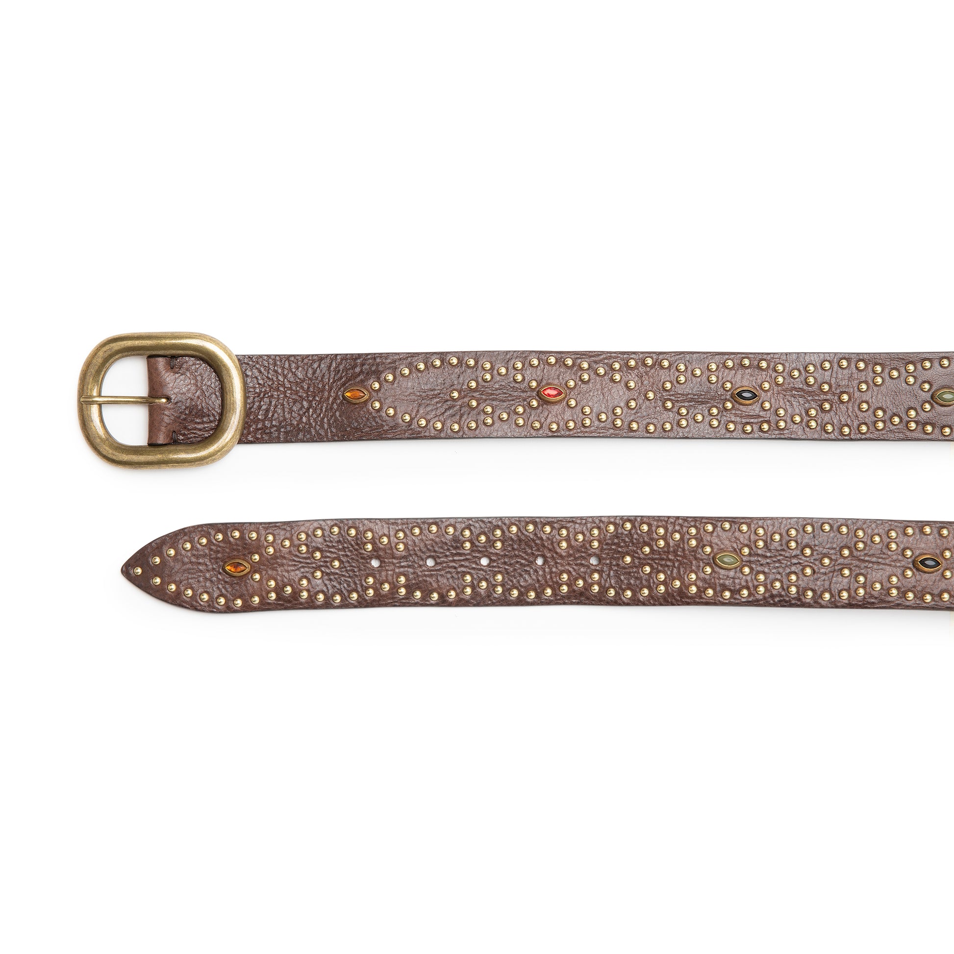 LANCASTER LEATHER BELT WITH MANY GOLDEN STUDS AND ANTIQUE GOLDEN BUCKLE.