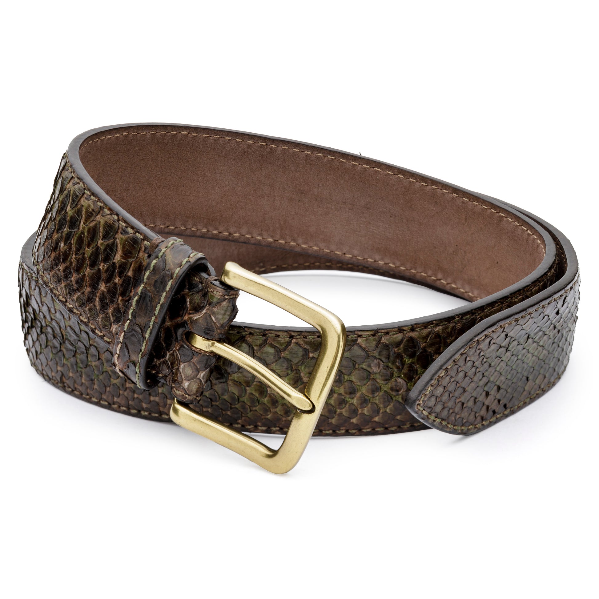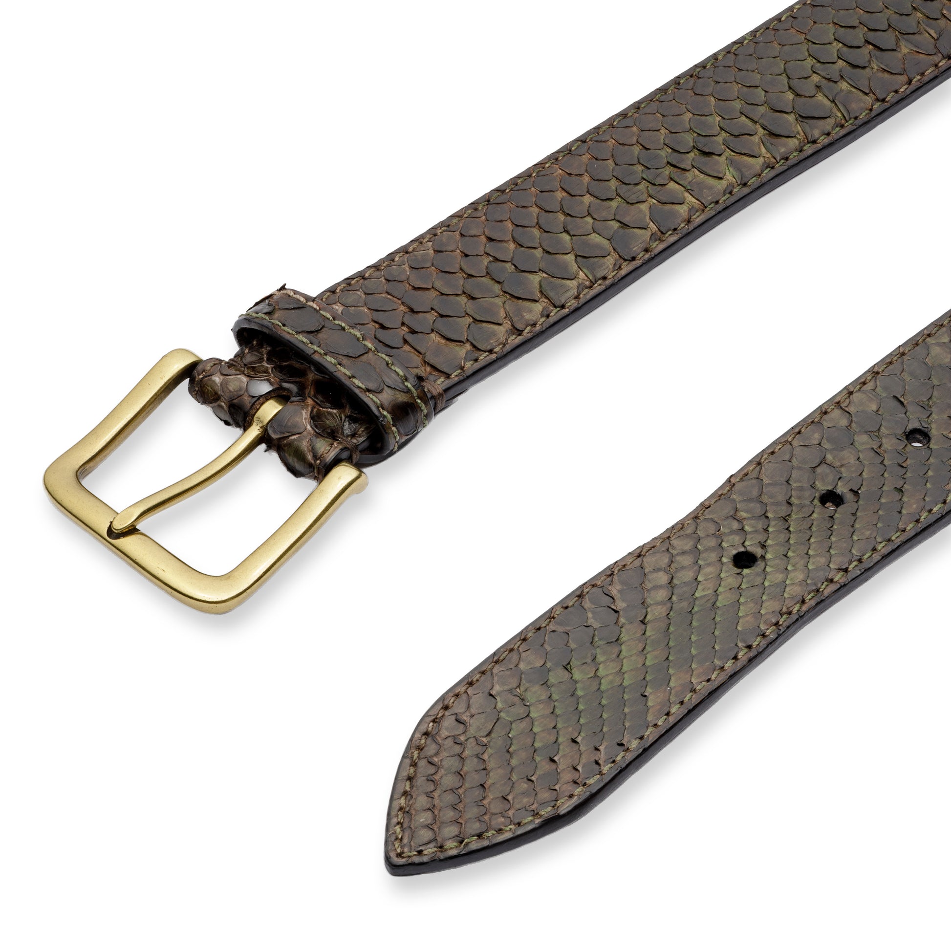 PYTHON LEATHER BELT WITH BRASS BUCKLE