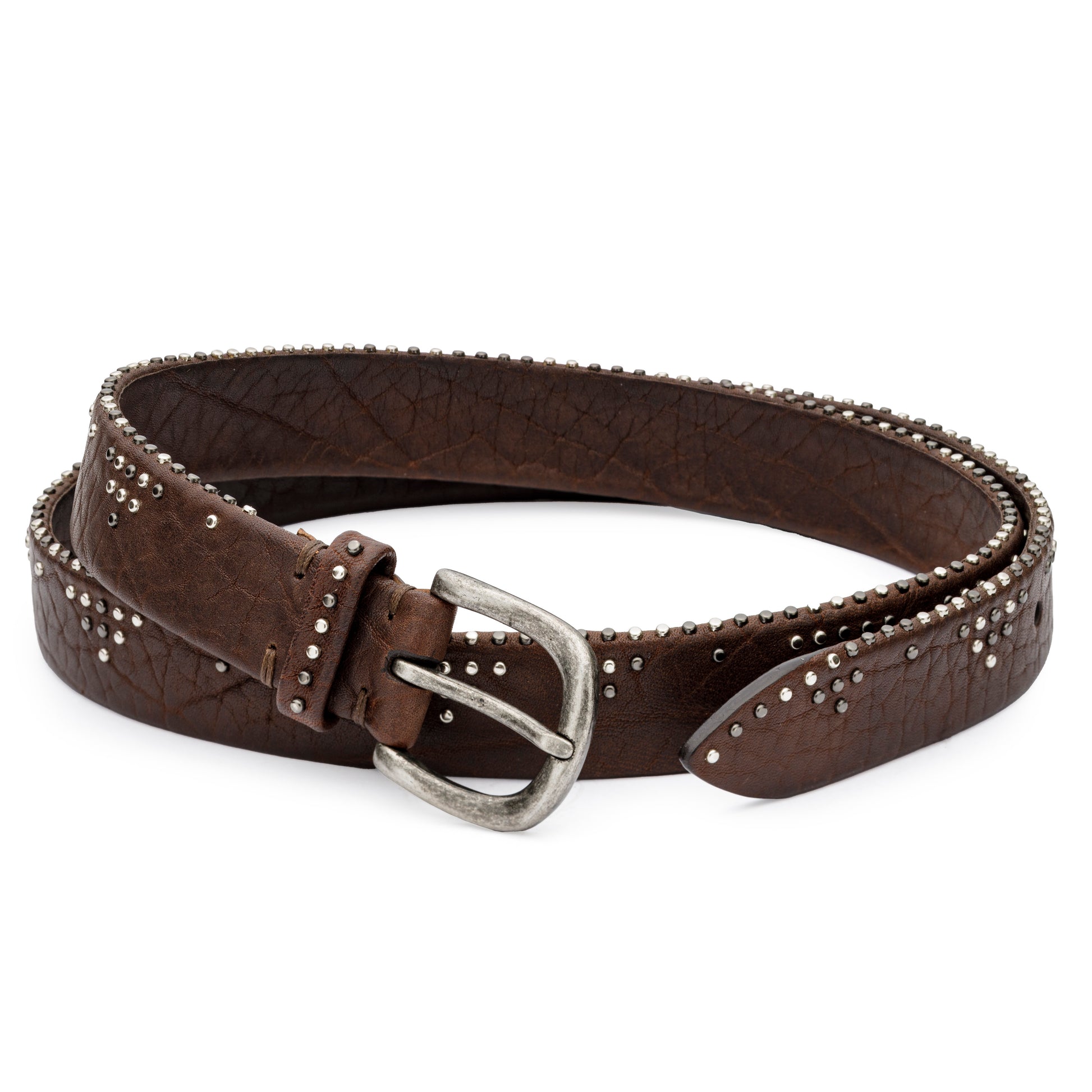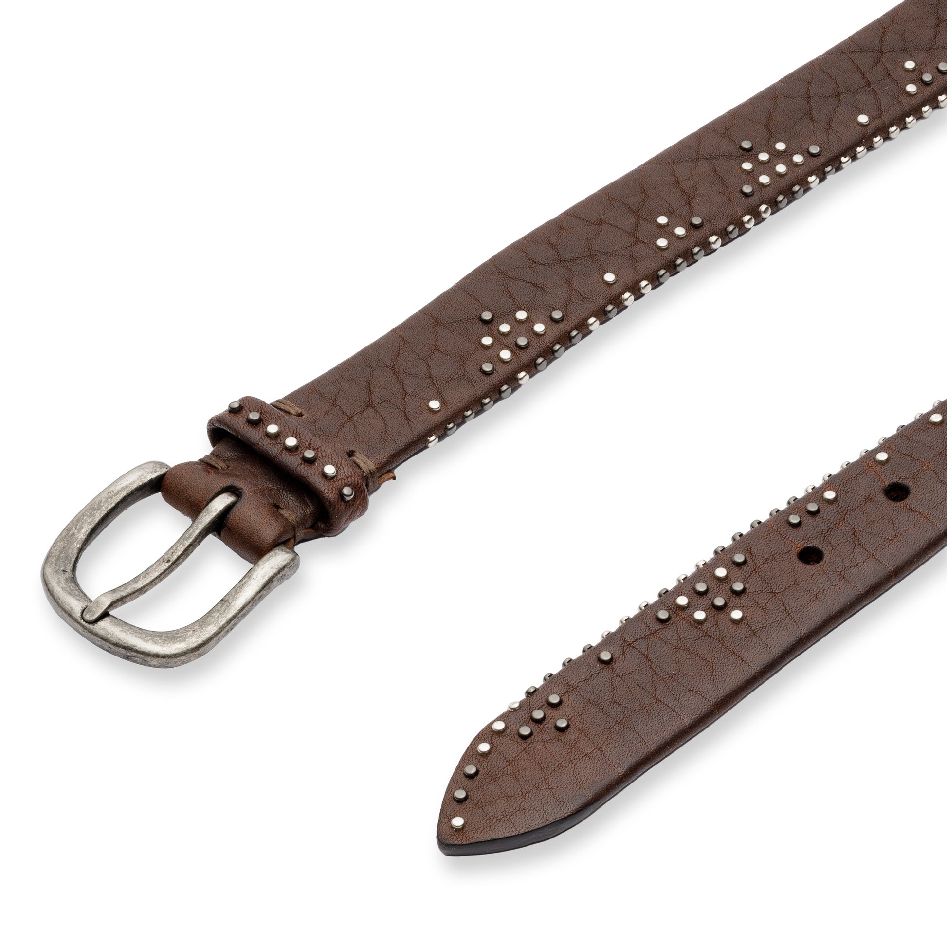 LEATHER BELT WITH STUDDED EDGE AND STUDDING ON THE SHAFT