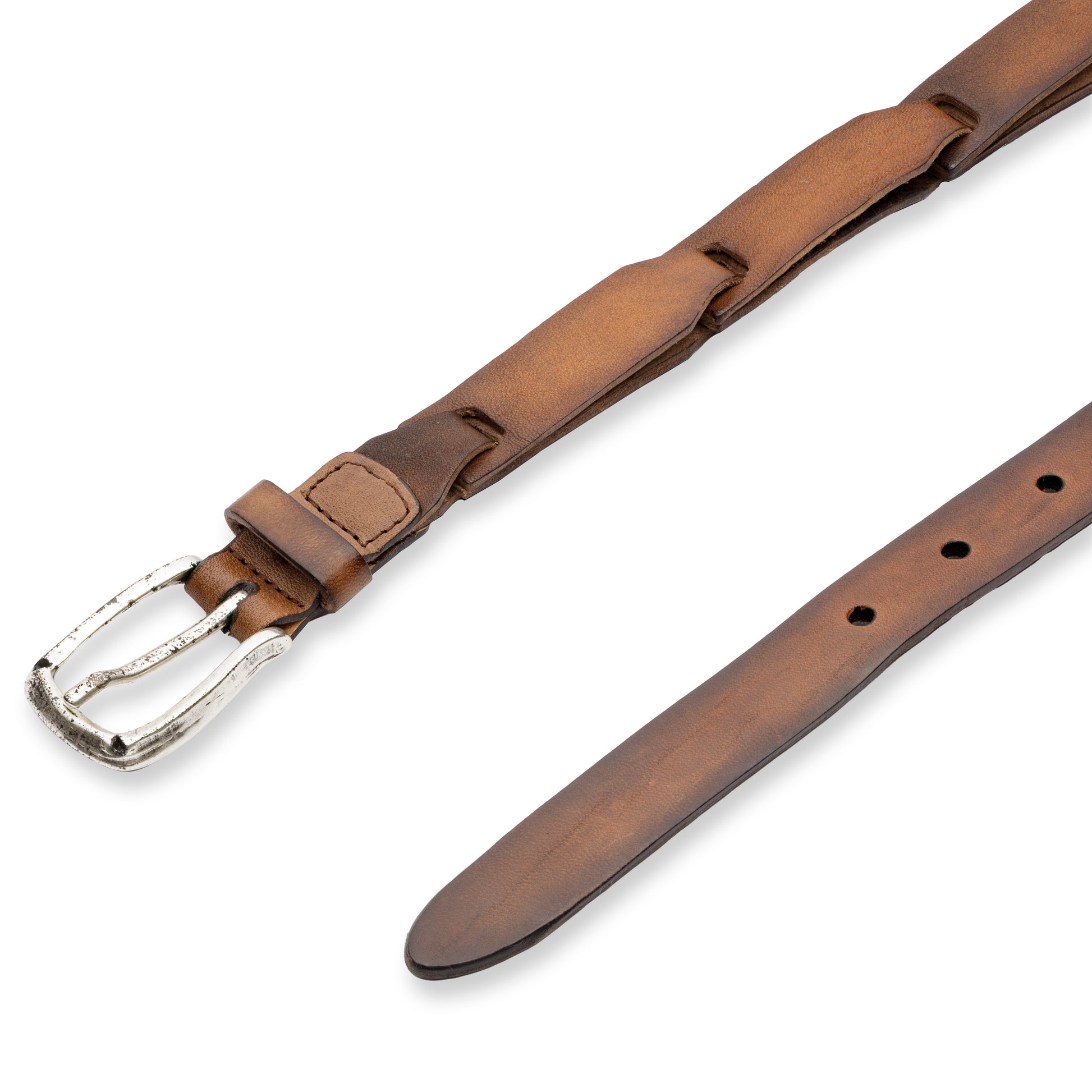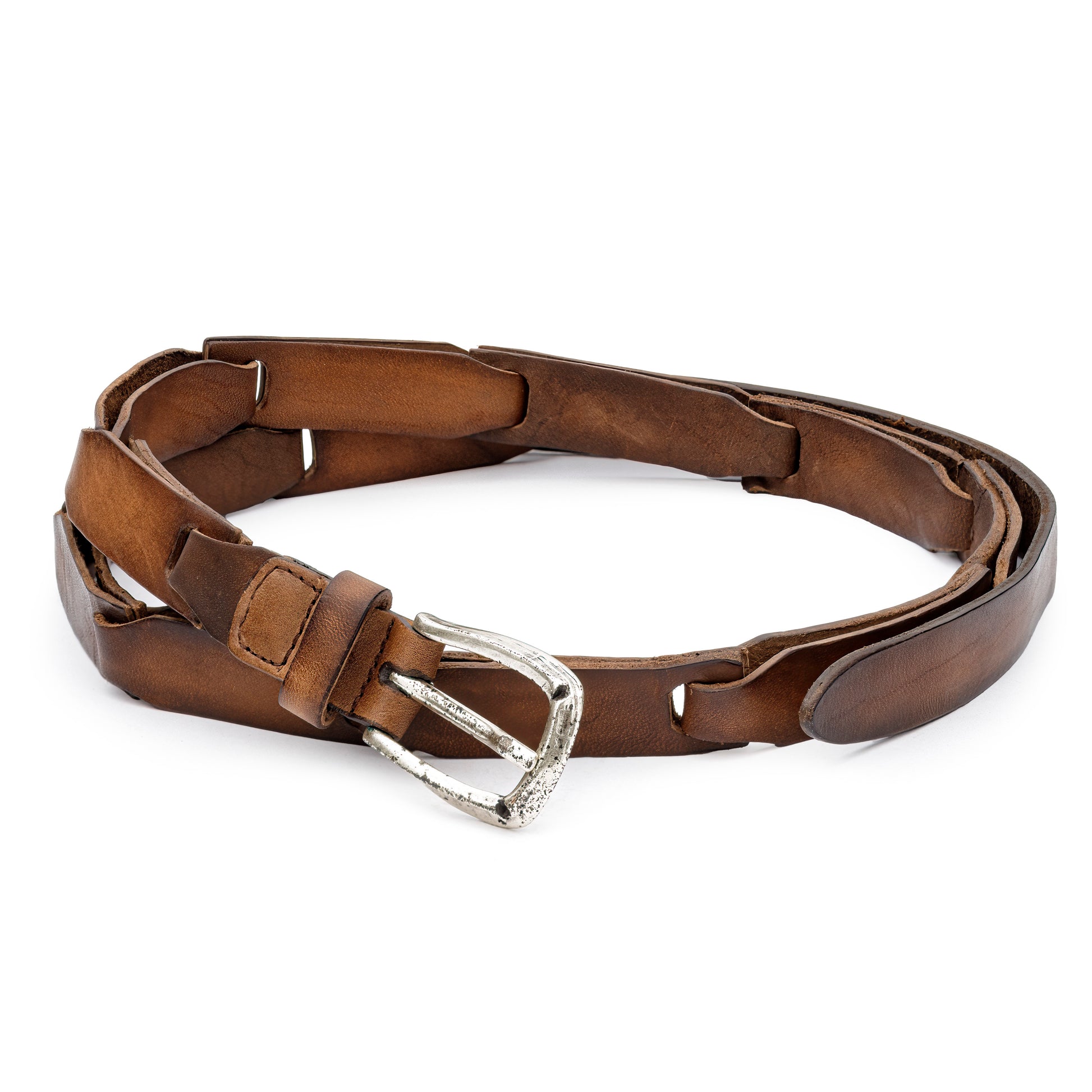 CHAIN WORKED LEATHER BELT WITH AGED BUCKLE
