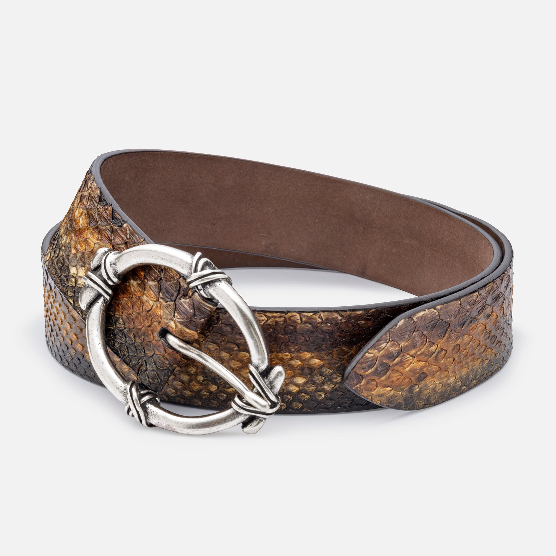 HAND PAINTED GENUINE PYTHON BELTS WITH SILVER BUCKLE