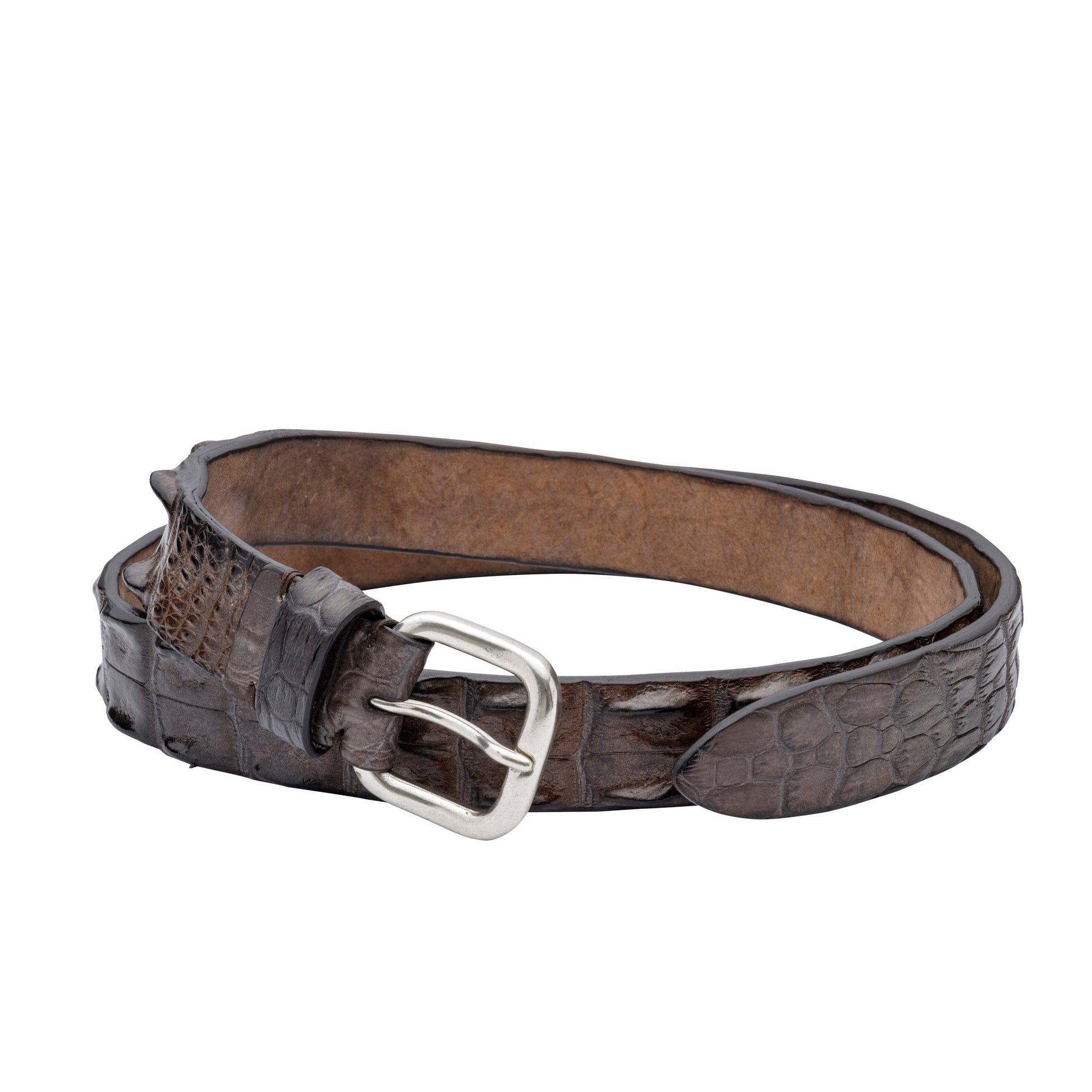BELTS IN GENUINE HAND PAINTED CROCODILE LEATHER WITH SILVER BUCKLE.