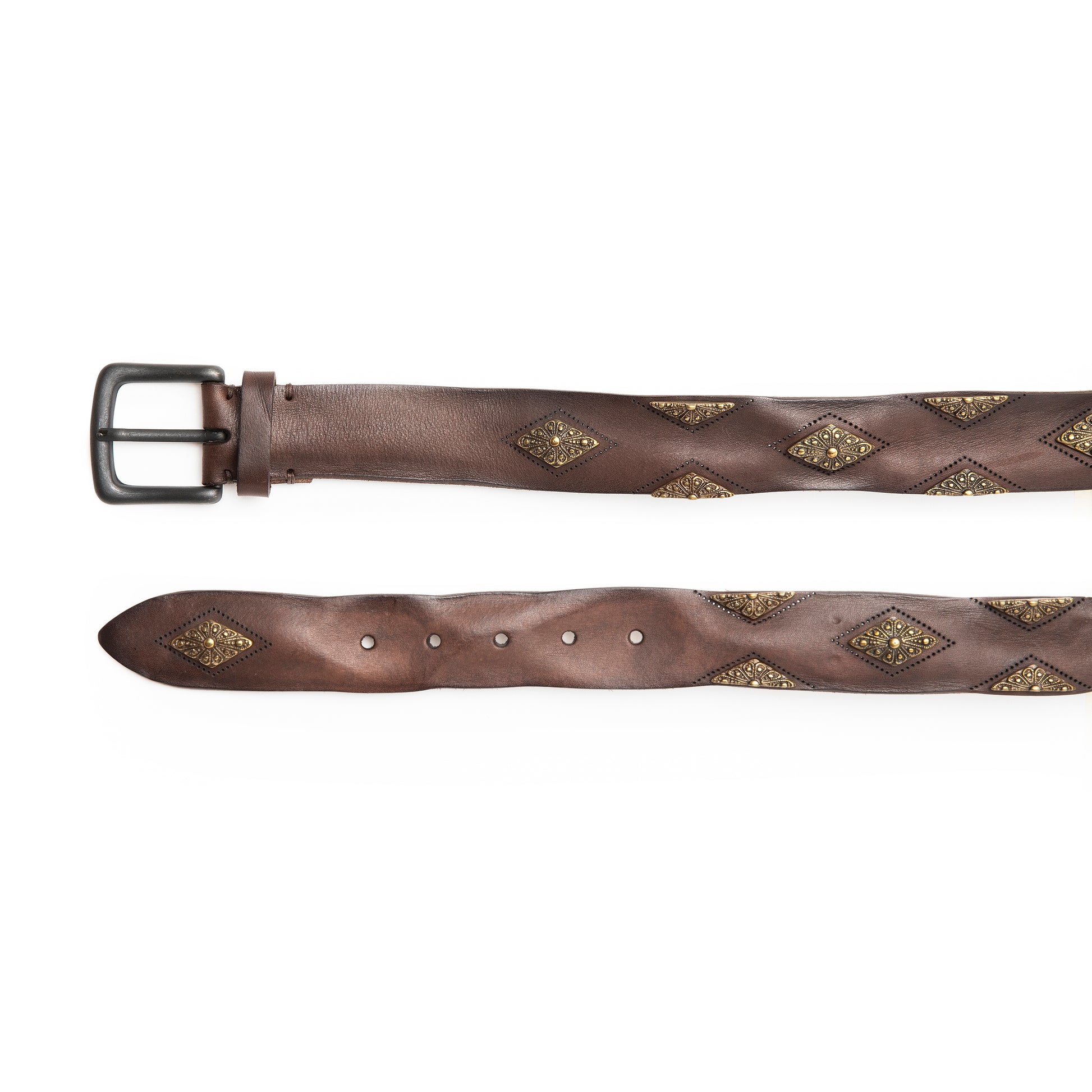 LEATHER BELT WITH DIAMOND-SHAPED GOLDEN STUDS.