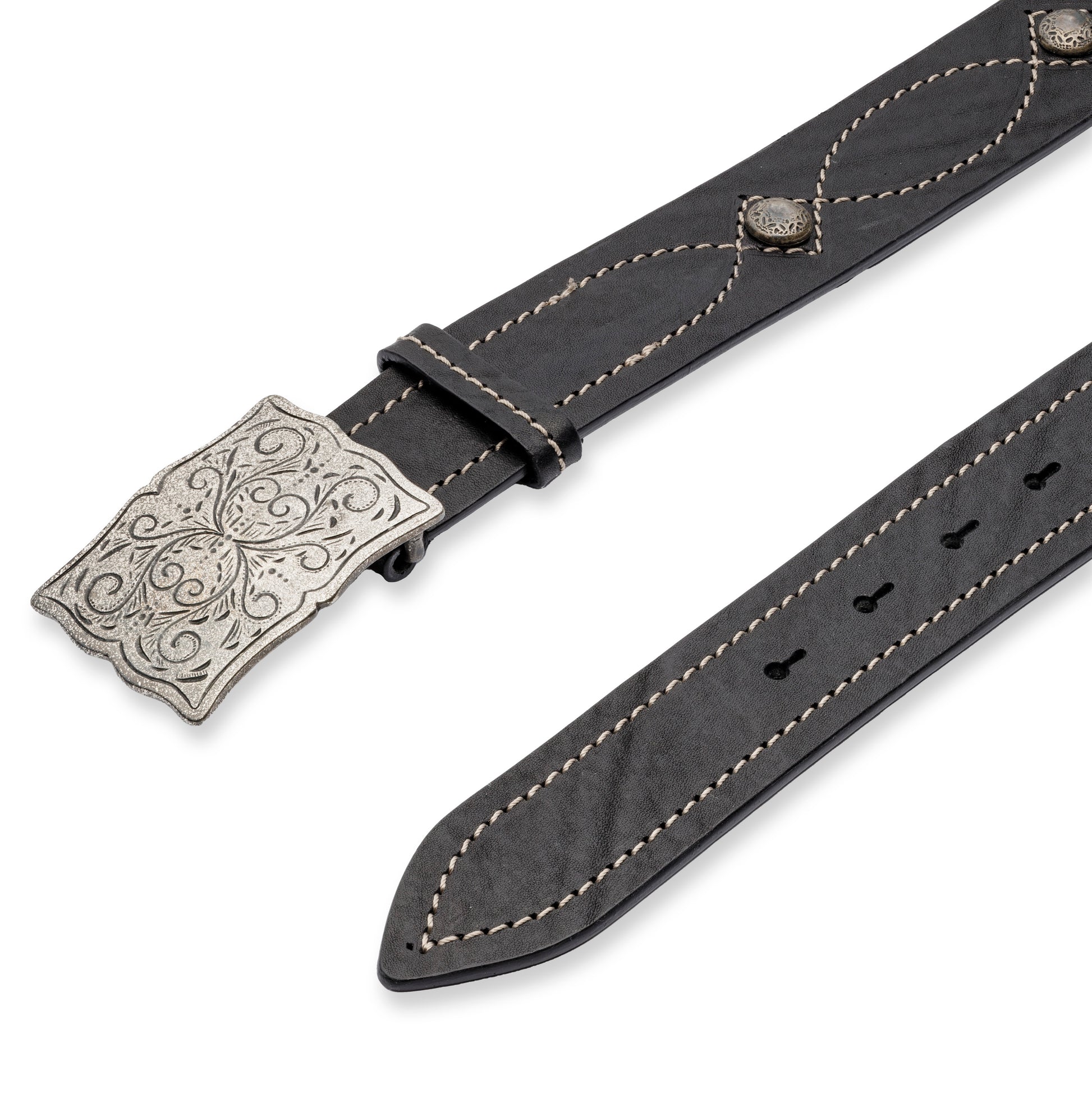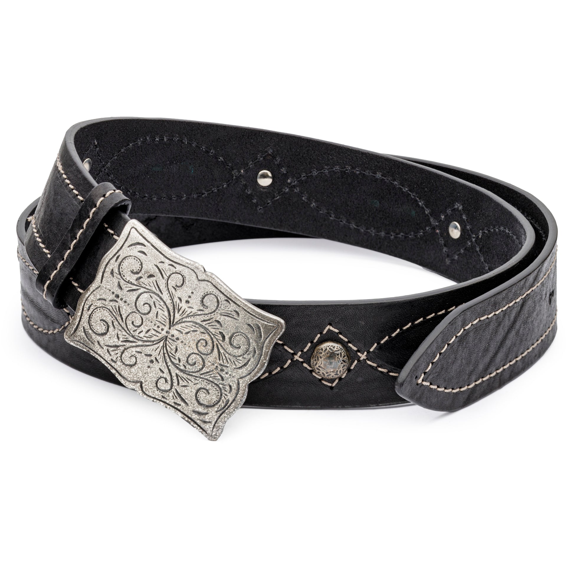 VINTAGE LEATHER BELT WITH A BIG BUCKLE.